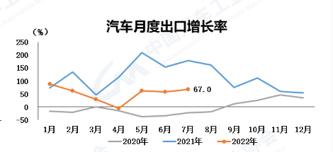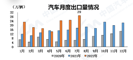 近日,中国汽车工业协会发布的数据显示,2022年7月中国汽车企业出口29万辆,续创历史新高,出口量环比增长16.5%,同比增长67.0%。其中,新能源汽车出口5.4万辆,环比增长89.9%,同比增长37.6%,呈现快速增长势头。